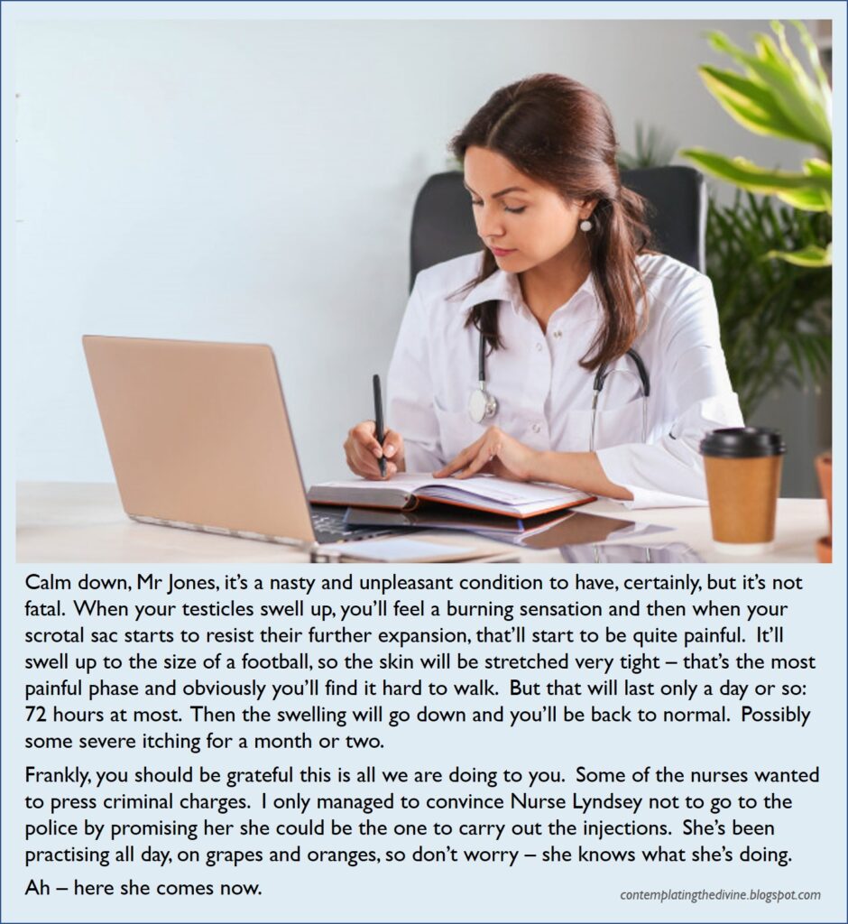 Many wives like to have the anaesthetist there and ready, at least, in order to enjoy the look on hubby’s face when he realises she’s not going to do anything.