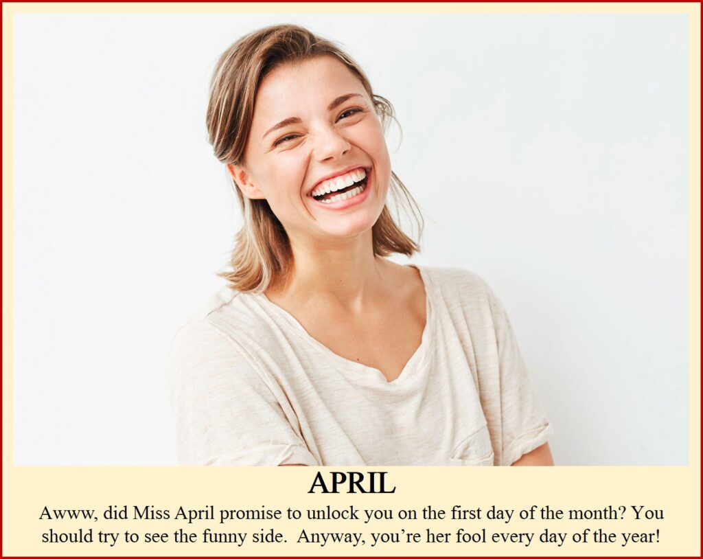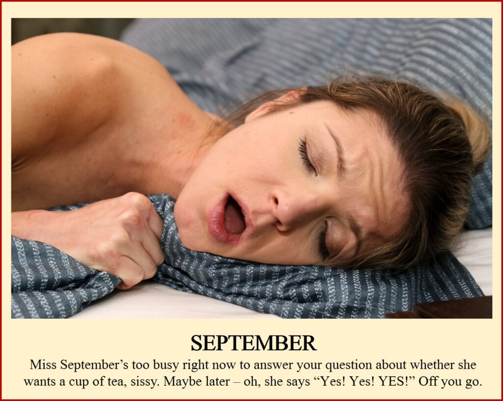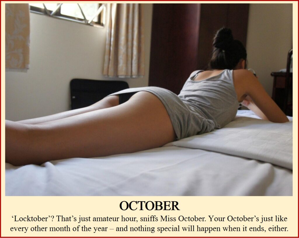 This year’s calendar is equally pointless, to match your pointless lives. It’s a chastity calendar, or chastendar as no one likes to say, in which the absence of any dates allows you all to avoid the misery of noticing that she has not circled one single day in red. Maybe one day she will? Anyway: another year… 365 days… more than thirty-one million seconds, I understand. Enjoy watching them tick by…