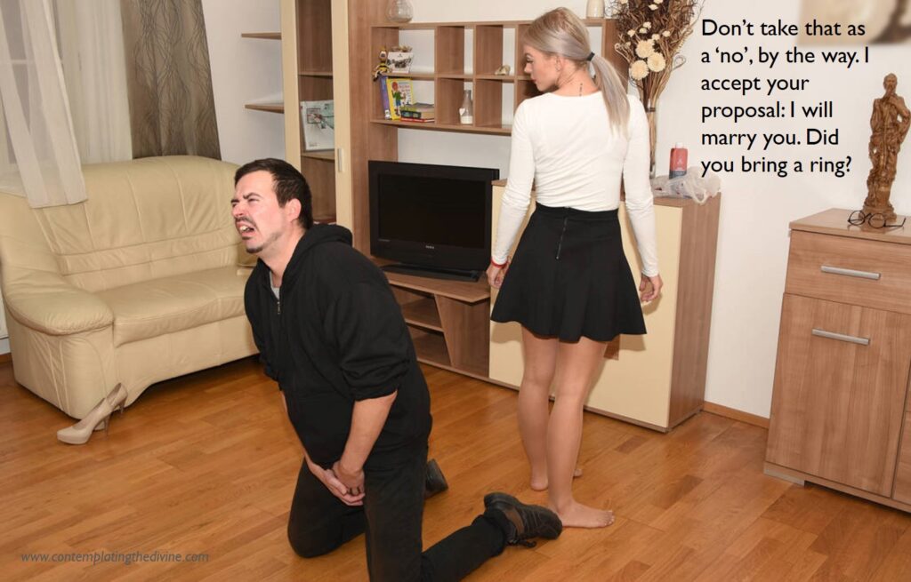 I expect he’ll come up with some lavish belated gift or other… she can even make some suggestions while she has his full attention like this.
