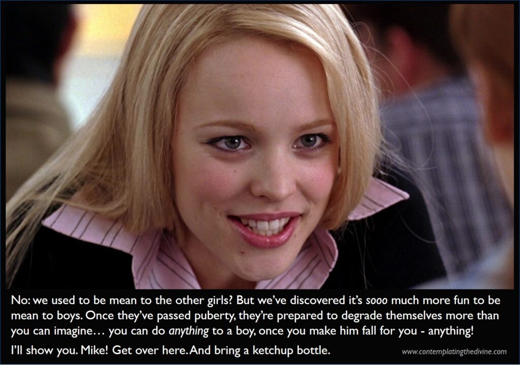 Wednesday. No – Sunday! And if it’s Sunday, it must be a themed special. What’s the theme today? Well, we continue to delay the scheduled World War M post, because of unpleasant (and, it would seem, somewhat poorly thought-out) developments in the so-called ‘real world’, so today we are once again celebrating that most delightful of feminine attitudes: being utterly, stubbornly, deliciously unreasonable.
