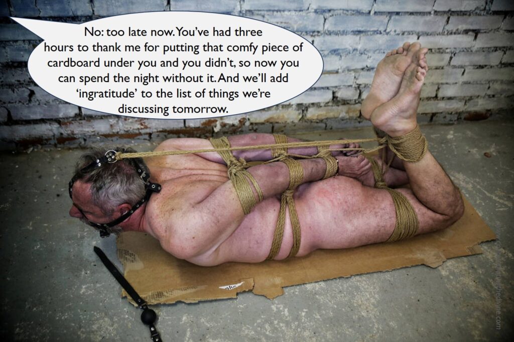 I hope he’ll have the sense tomorrow to thank her properly for letting him spend the night on her lovely concrete floor. Some men can be so thoughtless.