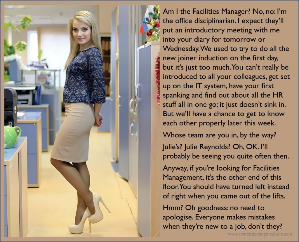 Stories and pictures themed around female domination and male subjugation and servitude. Unsuitable for children, for alpha males, for hard-core practitioners with an interest in the politics of bdsm and the mechanics of complicated rope work. Of interest to perverts like me, basically.