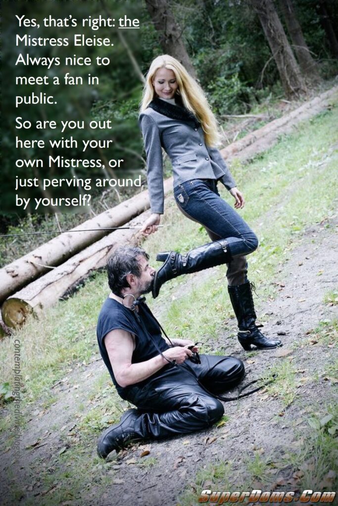 Stories and pictures themed around female domination and male subjugation and servitude. Unsuitable for children, for alpha males, for hard-core practitioners with an interest in the politics of bdsm and the mechanics of complicated rope work. Of interest to perverts like me, basically.