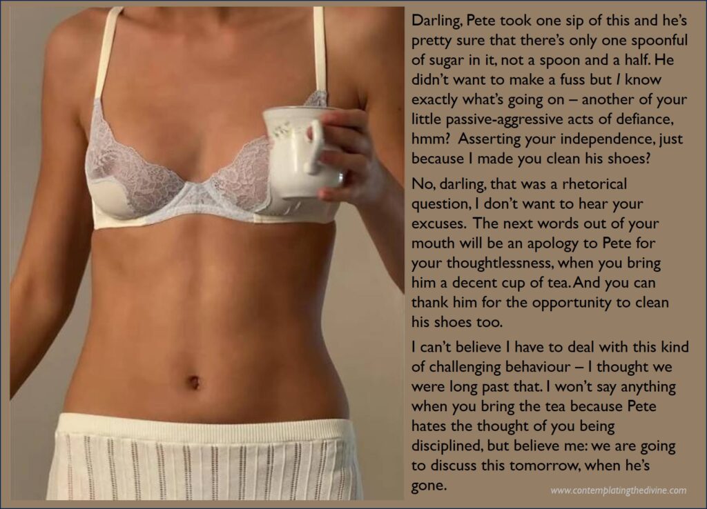 Even experienced submissives can sometimes forget themselves and indulge in shockingly challenging behaviour. Just the other day, I was thanking my SO for a punishment beating – down on my knees with my tear-stained face against the floor, as you do – when all of a sudden a note of insufficiently sincere gratitude crept into my voice. Apparently. I can’t imagine what provoked me into such a blatant act of insubordination, but you can be sure my good lady didn’t deal with it lightly.