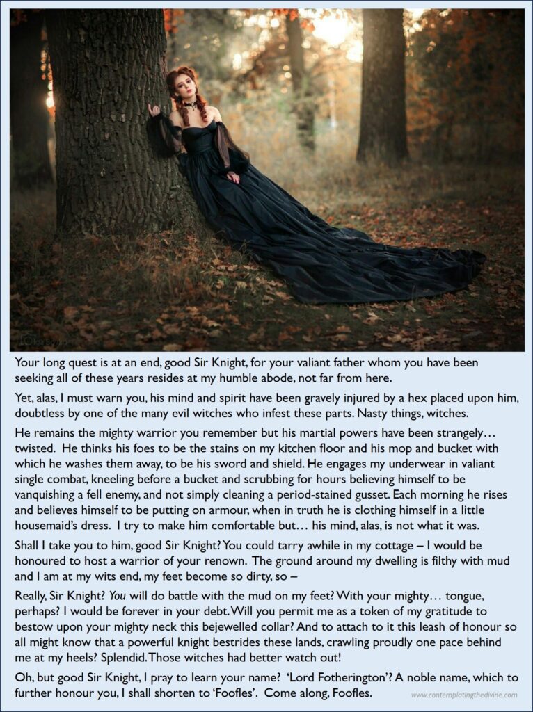 Yes, more scenes from stories of brave princesses rescuing – or not – helpless knights and suchlike. A ‘happy ending’ every time – without even the need to plead and beg for it.