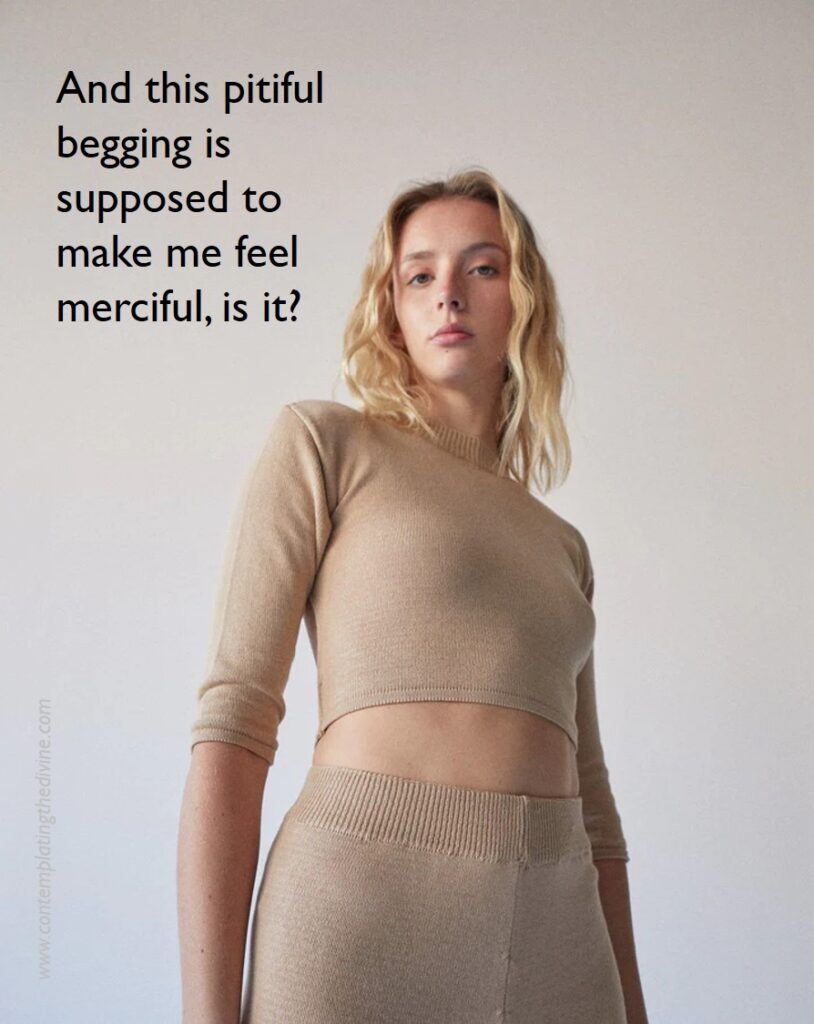 Well, if it’s pitiful enough it should, shouldn’t it? That’s what ‘pitiful’ means. Perhaps you could mansplain that to her – it can only help.