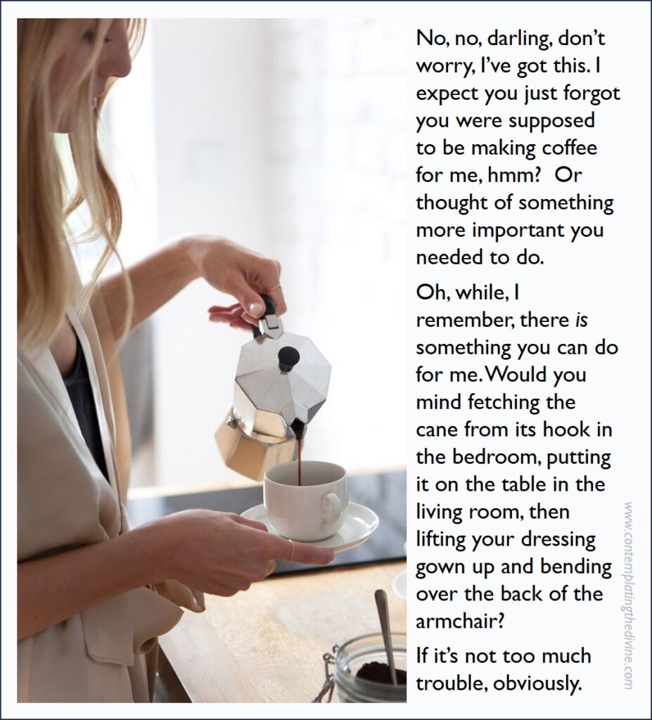 My SO is sometimes passive-aggressive like this. When she’s not being aggressive-aggressive, that is.