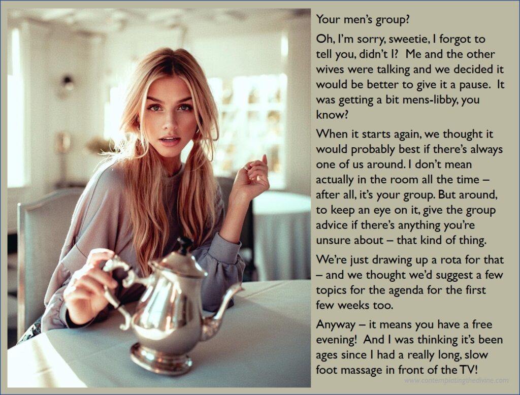 Ah, like the days of Covid when we were getting used to all this. We’ve all got our embarassing Zoom stories, I expect – mine involves a funnel gag, a plastic sissy dress and one of the bulls my SO had decided to let into our Covid bubble, but I’ll spare you the details. Bull in a bubble, you ask? Yes, she had to limit herself to just three, which she found very frustrating, poor thing, but I’m proud to say that I was able to help her work through her anger.
