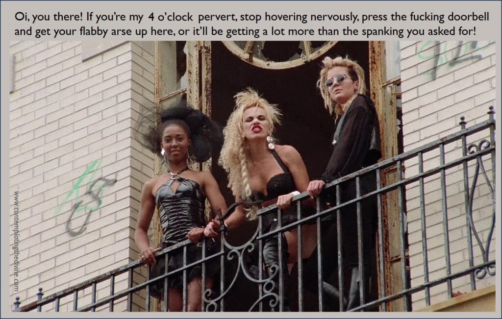 Fans of this lovely lady may wish to watch her dancing as Wednesday, here. I mean, it’s not femdom or anything but it’s very… ummm… well, it’s just very. I believe that is the original, but I have to say I prefer the version set to Joy Division. But then, I is Bri-ish, innit?
