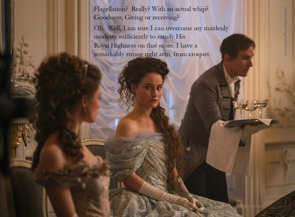 Fun fact: the beautiful Anna Popplewell who features here is, I think, the only actress I have ever captioned whom I have seen in (so-called) real life. Not a very fun fact, I know, but I don’t get a lot of fun in my life.
