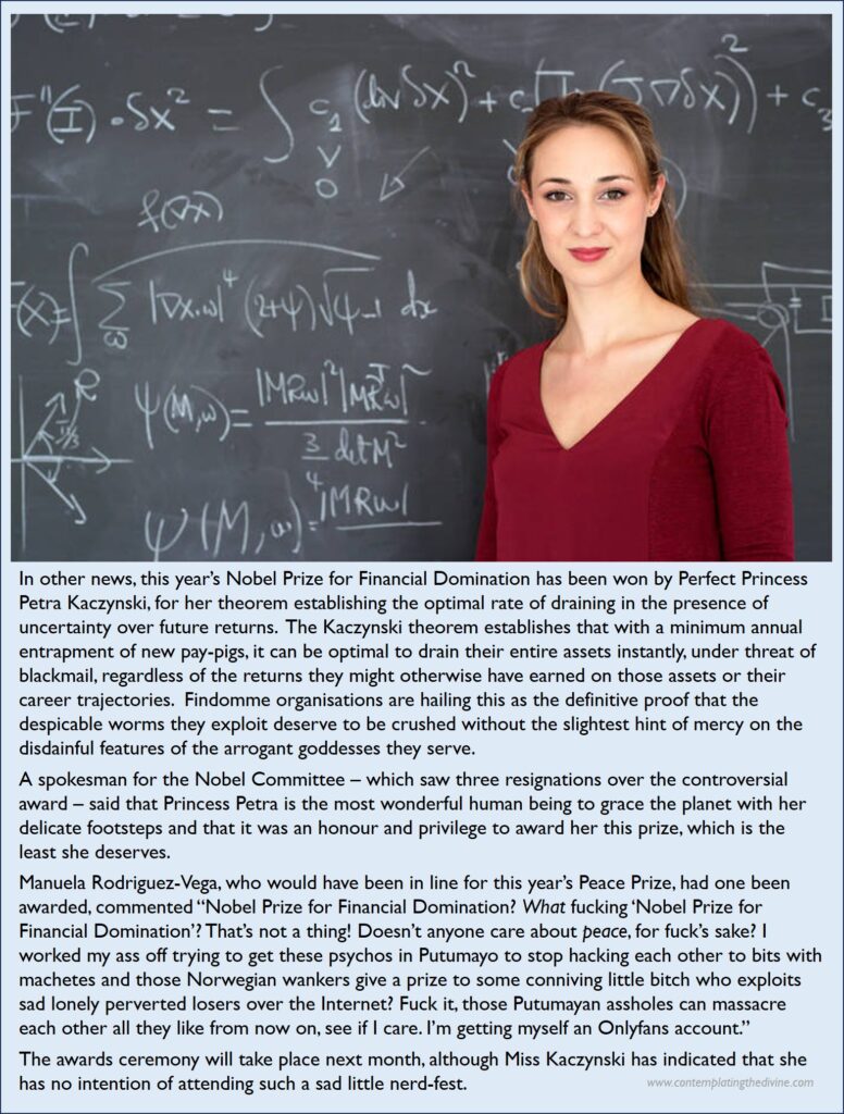 If anyone’s thinking she’s only giving away someone else’s money, you haven’t really got the findomme thing. That’s Jerk-off’s wallet, so the money in it is hers, whatever you (or indeed Jerk-off) might think. Incidentally, Jerk-off’s name is going to change soon, as it doesn’t really suit his new lifestyle.