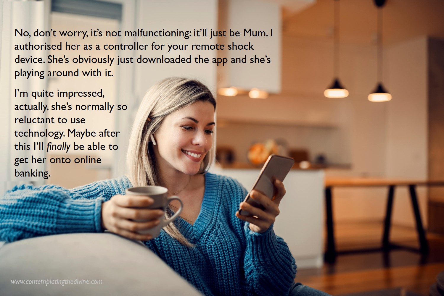 Any man who still clings to outdated notions that women are slow to adopt technology should try locking an electric shock device onto his genitals and handing his partner the remote. He’ll soon learn.