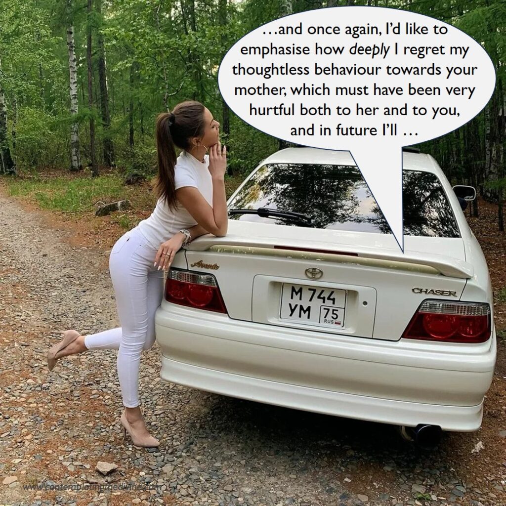This lady, although seen only from behind, is the stunningly beautiful but (it seems) essentially uncontactable Lady Tamara Kenworthy. Fairer maiden never gymslip wore.*